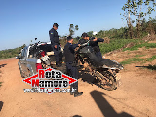 Duas motocicletas foram furtadas/roubadas na capital, Porto Velho, e já estavam escondias na mata, cobertas por folhagem em um ramal no Distrito Araras, prontas para serem cruzadas para Bolívia.