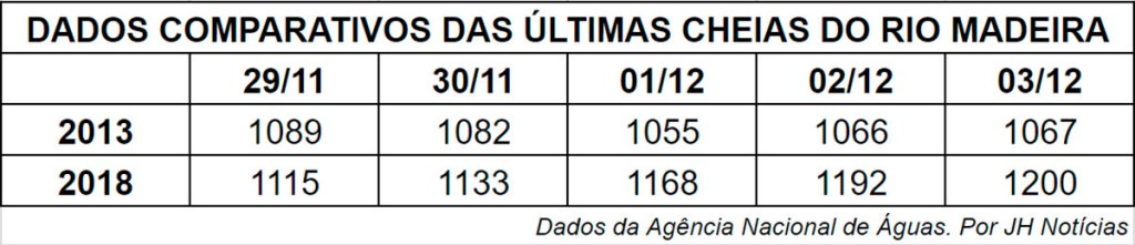 Os dados da ANA mostra que o nível do rio Madeira hoje em comparação aos mesmos dias das últimas cheias, provando que poderá haver uma grande enchente em 2019.