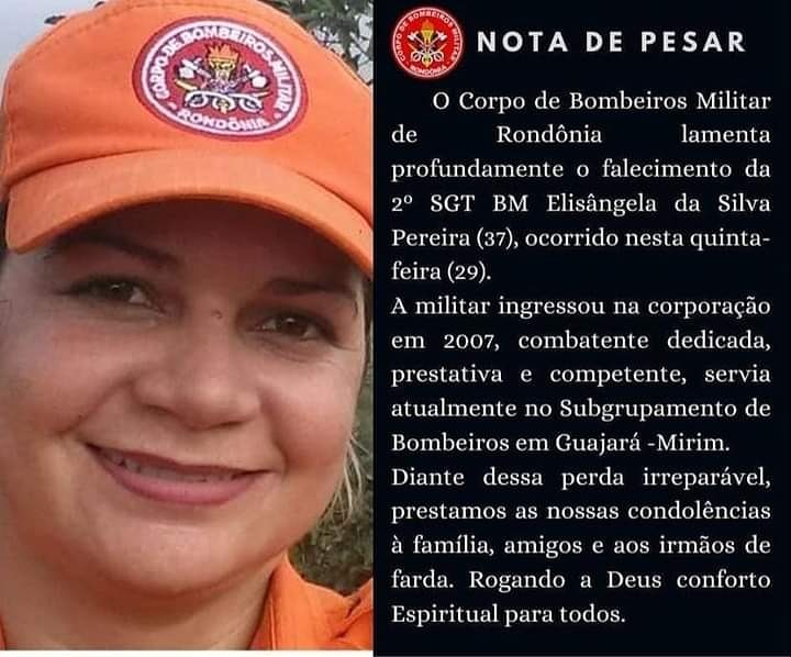 A nota relata que a 3ª SGT Elisâgela da Silva Pereira faleceu aos 37 anos. Ela ingressou na corporação desde 2007, e ao longo deste tempo foi peça de fundamental importância na realização de eventos como Bike Trilha, e no sucesso que foi o Bombeiro Mirim.