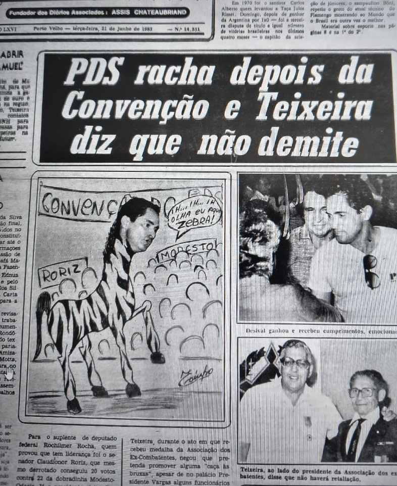Em 83, na convenção de escolha do novo diretório regional a chapa liderada pelo senador Odacir Soares ganhou a disputa por um voto, e houve quem creditou a derrota da chapa apoiada pelo governador Jorge Teixeira à ausência dele, deixando o campo limpo para oposição interna.