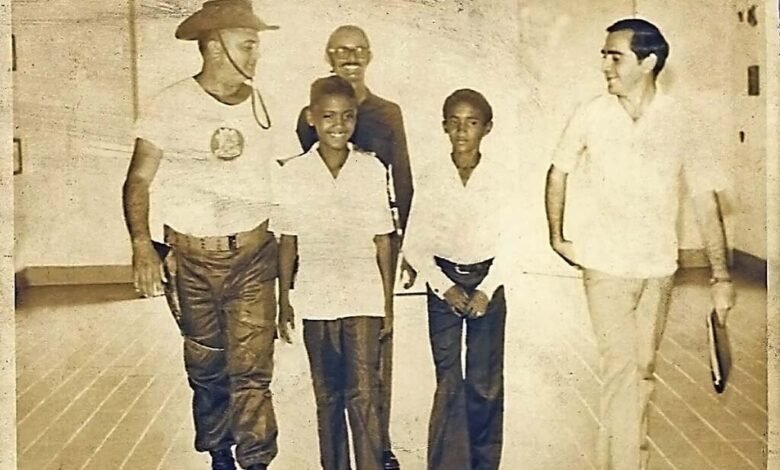 Foto: cap. Correia (5º BEC) o 1º prefeito e o 1º governador mirins, e o jornalista Nelson Townes – atrás o jornalista Ciro Pinheiro. Acervo Adaides (Dadá) Santos.
