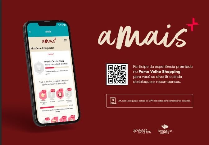 O Porto Velho Shopping apresenta no dia 1º de outubro, às 16h, o lançamento oficial do aMais, programa de benefícios que transforma cada visita ao shopping em oportunidades de ganhar prêmios e descontos. O acesso será feito direto pelo app do Porto Velho Shopping, onde os clientes recebem uma cartela mensal com 16 desafios.